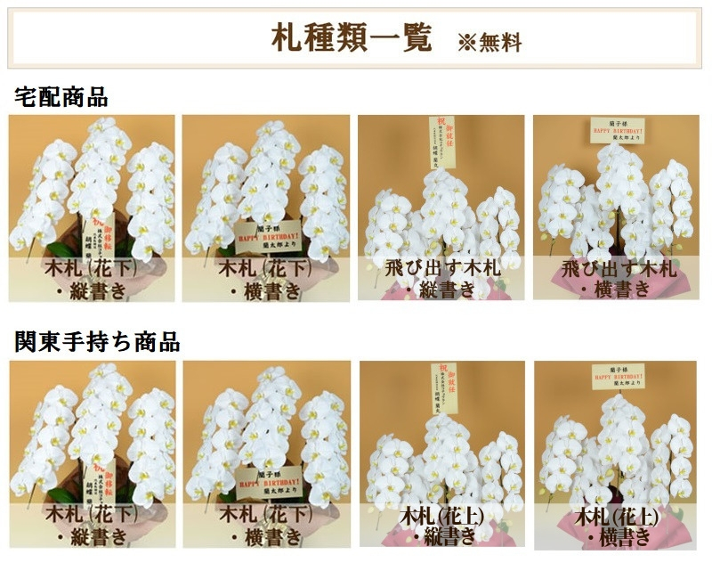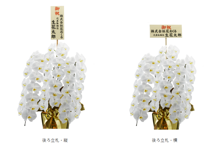せっかく当ショップからご購入いただくお客様に恥ずかしい経験をしないよう、胡蝶蘭をお届けするプロとして、ふさわしい立札をご用意しています。